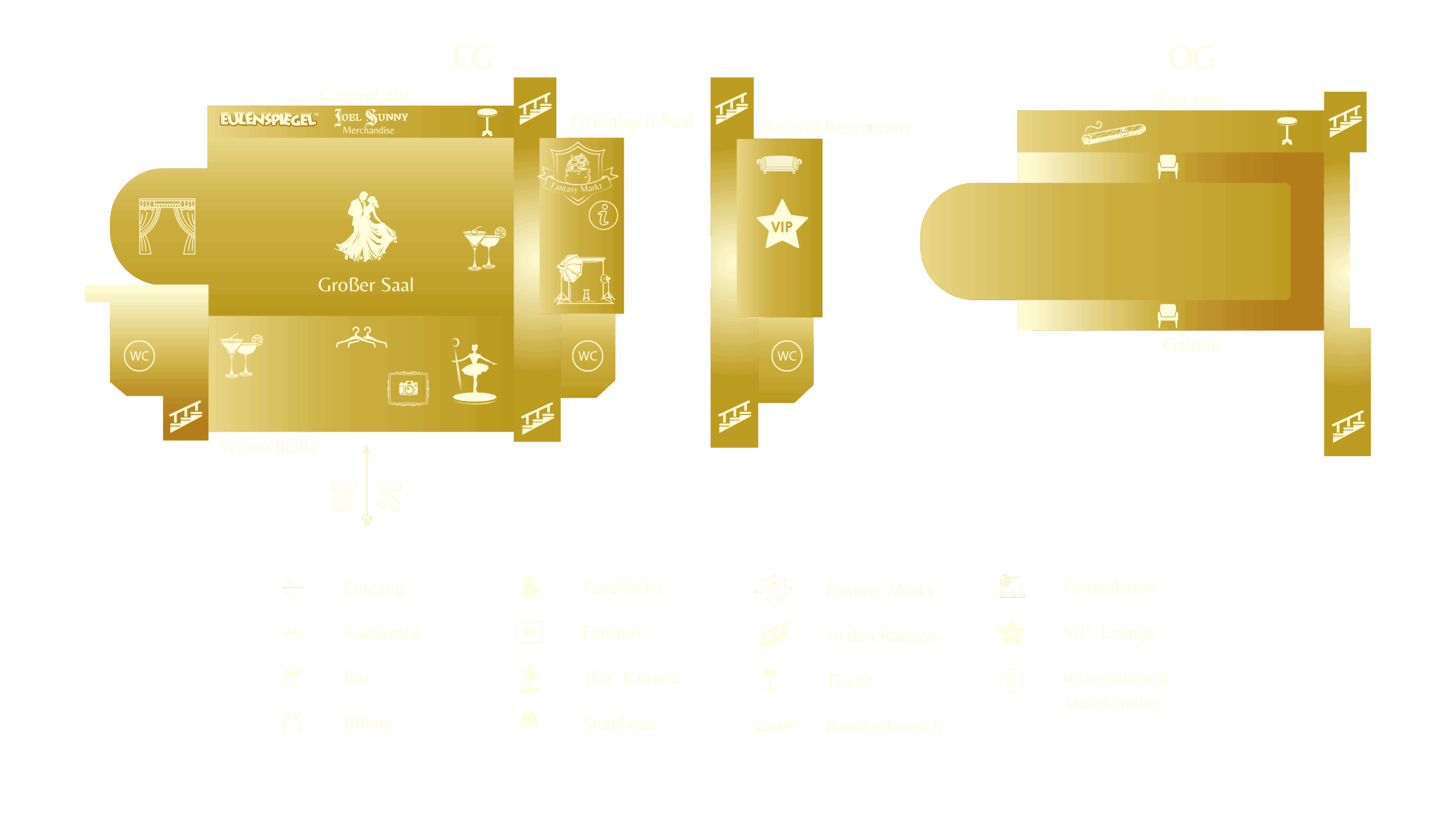Vor Ort werden kleine märchenhafte Stärkungen angeboten, mit deren Zauber du deine Energie wieder zurückgewinnen kannst – solltest du dich auf der Tanzfläche verausgabt haben. Daher empfehlen wir, dass ein füllendes Festmahl vor der Teilnahme am Ball eingenommen werden sollte. Bitte beachte, dass die Köstlichkeiten sowie die Getränke nicht im Ticketpreis inkludiert sind.